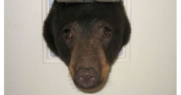 ニャンコ用の扉から侵入しようとした泥棒クマが決定的な写真を激写される!! おマヌケなんだけど超カワいい!
