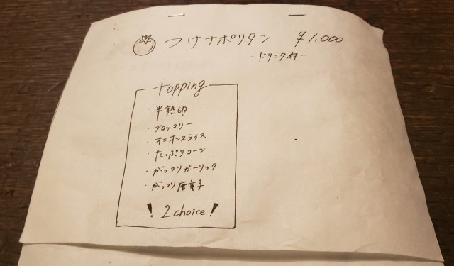 通常の「つけナポリタン」のほかにも、「シーフードつけナポリタン(1100円)」や、辛口の「DEATHつけナポリタン(1200円)」が用意されている。唐突に死を想起させるメニューが現れたので気にはなったが、当初の予定通り通常のものを頼むことにした。