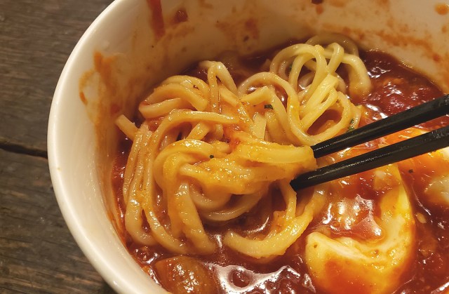 未知のものを前にした時、自分の知っているものと照らし合わせる。知能を持った生物としての習性を「つけナポリタン」に対しても発動しながら、麺をスープに浸す。