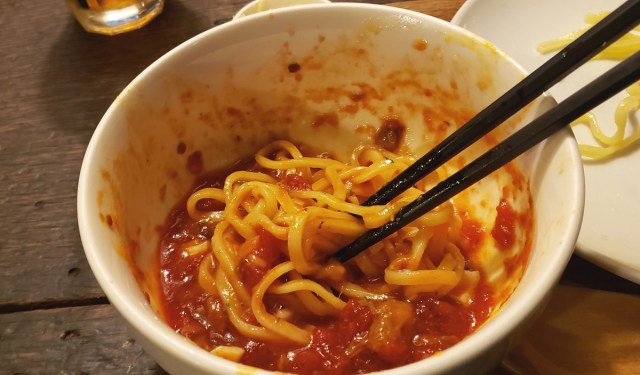 食べ終わる頃には、筆者は前言を撤回したい気持ちになっていた。反射的に「つけ麺に近い」と言ってしまったものの、この料理の奥深さは、単なる「新たなつけ麺」の域を出ているように思う。「つけナポリタン」という全く別の料理の個性にまで到達していると感じる。