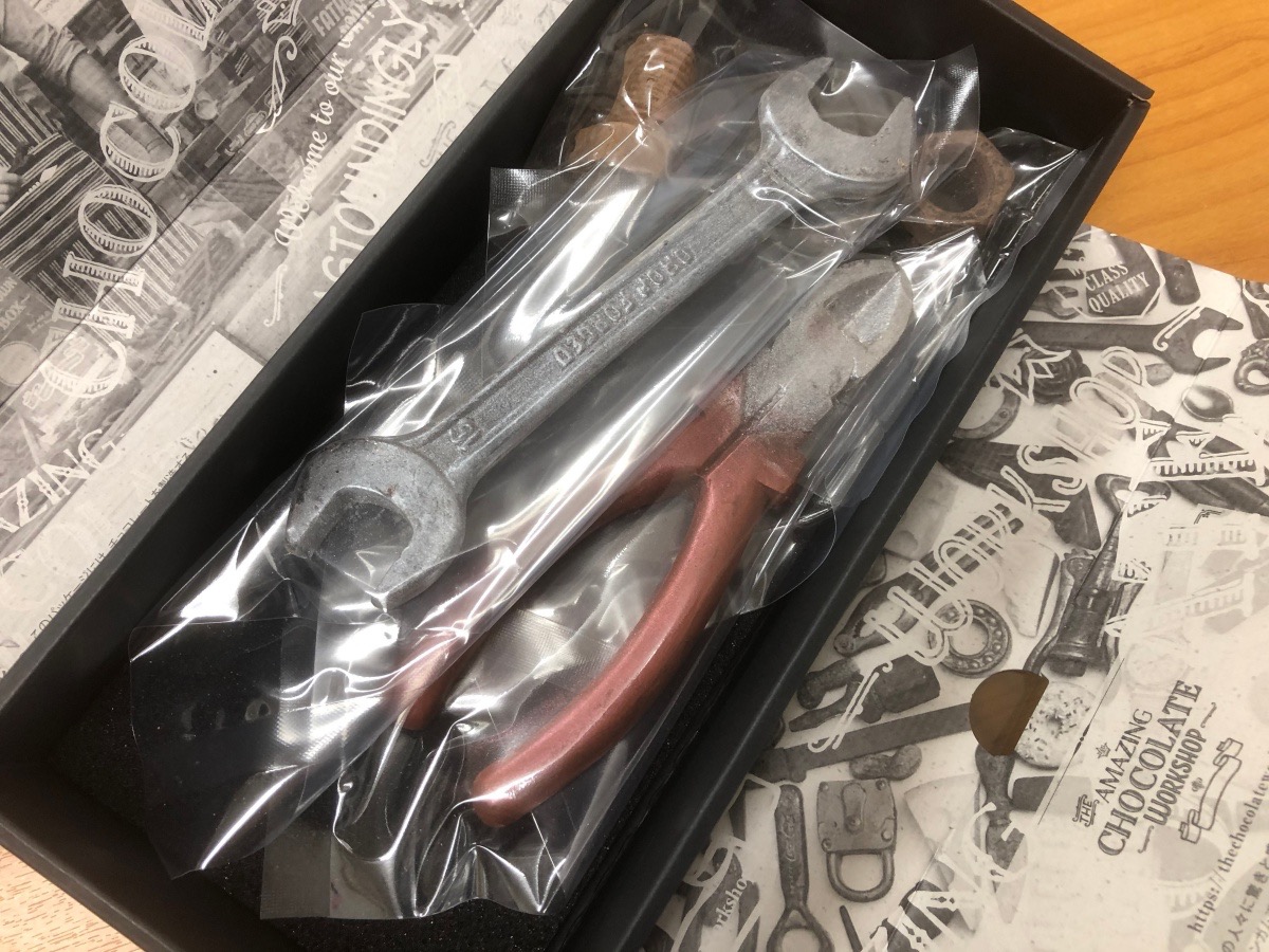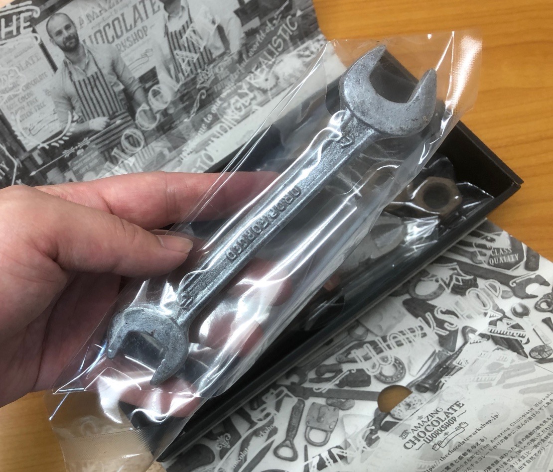 もしこのチョコを見て、何も突っ込まずにポリポリ食べる人がいたら……その人は以前にこのチョコを食べたことがあるか、あるいは日頃から工具をかじっているサイコパスのどちらかに違いない。それほどに工具。どこからどう見ても工具である。