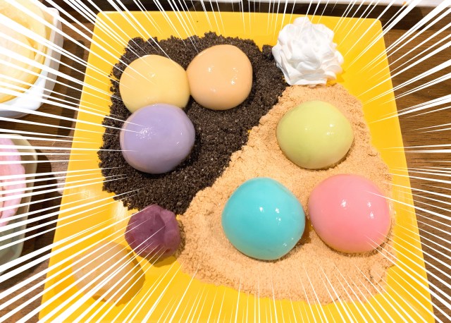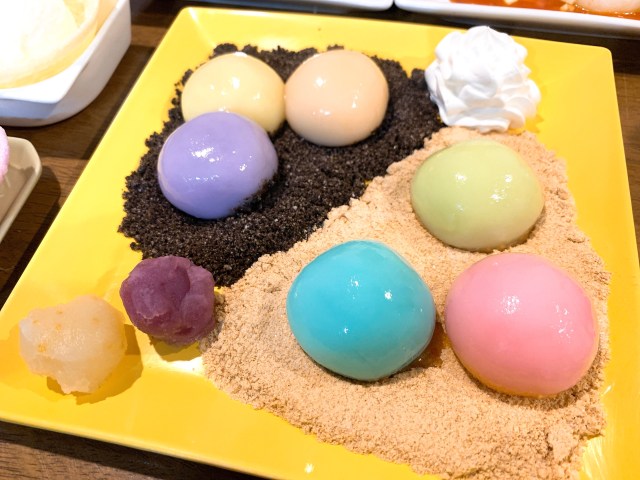 全然「白」玉じゃない! 色とりどりの「カラフル白玉」と、カラフル白玉にオレオをまぶした「オレオ白玉」がやってきた。このお店は「デザート」な白玉も一筋縄ではいかないのか。もはや「白」要素皆無。