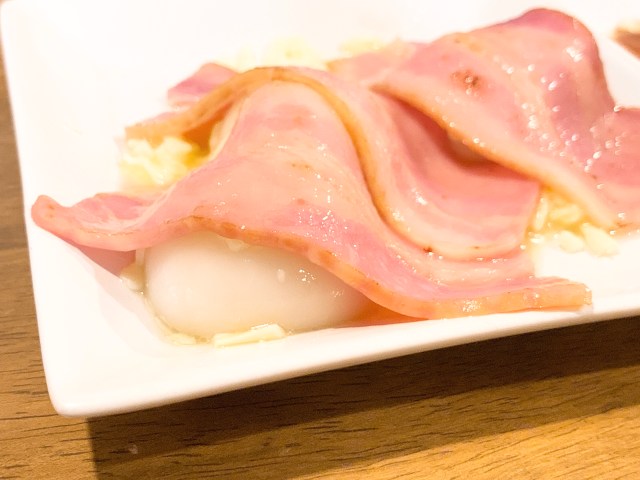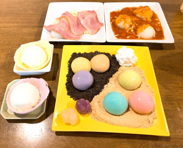 特に「ベーコンチーズ白玉」は、遠目で見るとだんだんお寿司に見えてくるような。事前に白玉だと知らなければ、シャリっぽい部分を初見で白玉だと見抜ける人は少ないのではないだろうか。