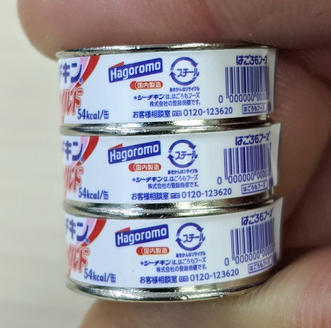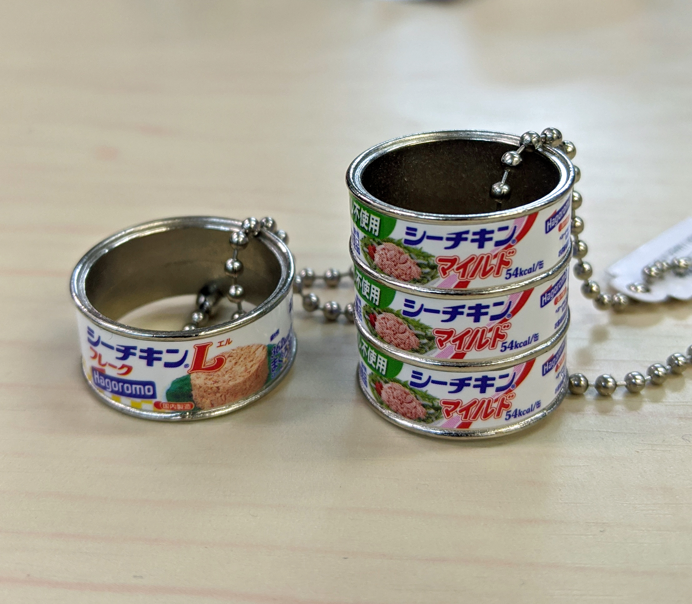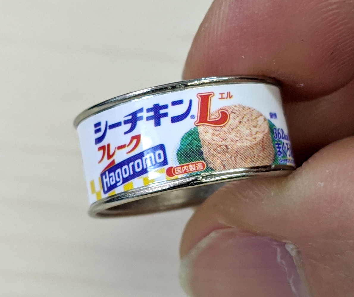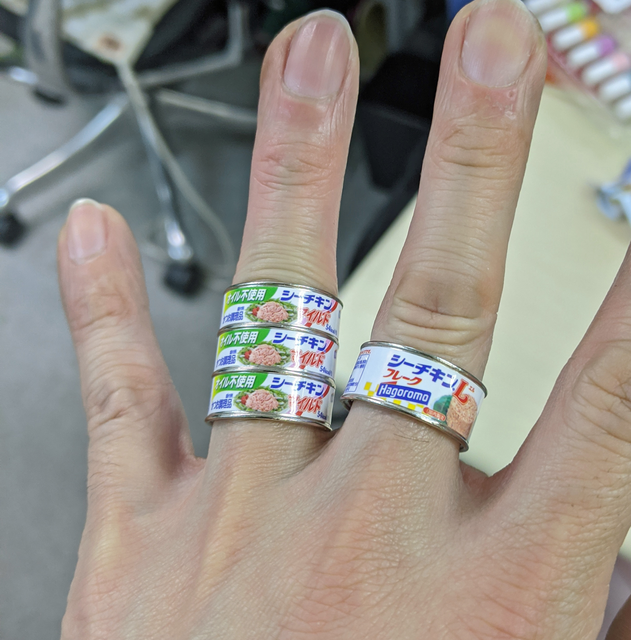 3連リングは完全に3缶パックのミニチュア版だ。ちなみにシーチキンLはキハダマグロを使っているのに対して、シーチキンマイルドはカツオ。まさかこんなところで、シーチキンの原材料を確認することになるとは思ってもみなかった。