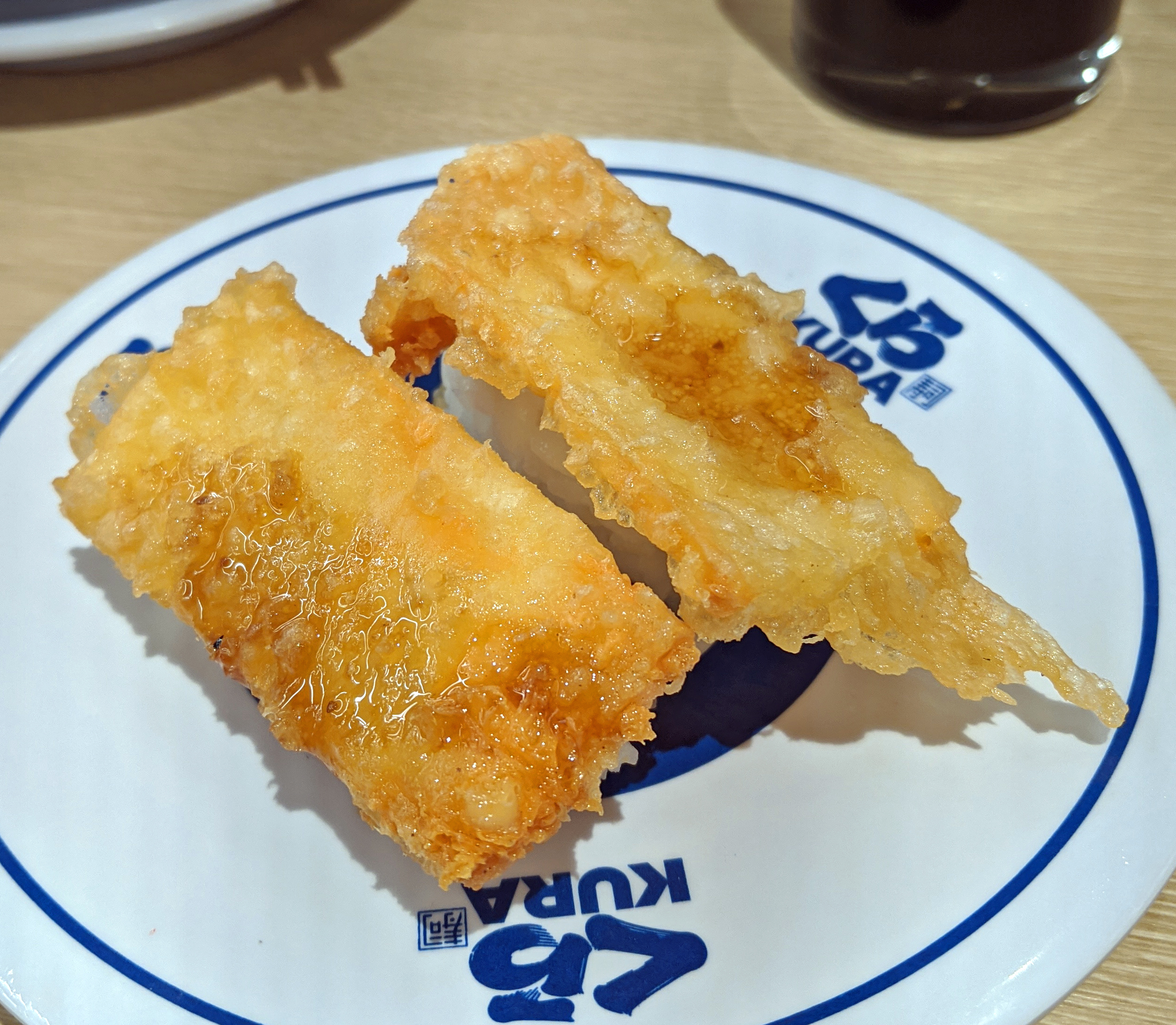 シャリと合わせても良いのだが、このせんべいのようなチーズ単体でもオーダーできるとなおヨシである。ライバルのスシローはサイドメニューのポテトフライがネットで話題となり、「ポテロー」との愛称を得るに至った訳だが、くら寿司はこのチェダーチーズ天を売りにして、今後の商品戦略を立てて欲しい。くら寿司、見直したぞ!