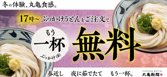 昨年11月。突如として “並から大への増量無料” に方向をシフトした丸亀製麺。しかし今年1月になって、どういうワケか再び “もう1杯無料” に舞い戻ってくることになる。その後、1カ月を待たずに開催されるのが今回のキャンペーンだ。丸亀よ、なぜそうまでして1杯余計に食わせたいのか。