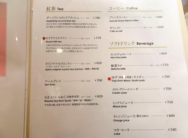 広い店内は常連さんらしき人や学生、海外からのお客さんでいっぱいだ。京都特有の新旧が混在した、不思議な空気が漂っている。席に通され、メニューを開くとビックリ。紅茶だけじゃない!!