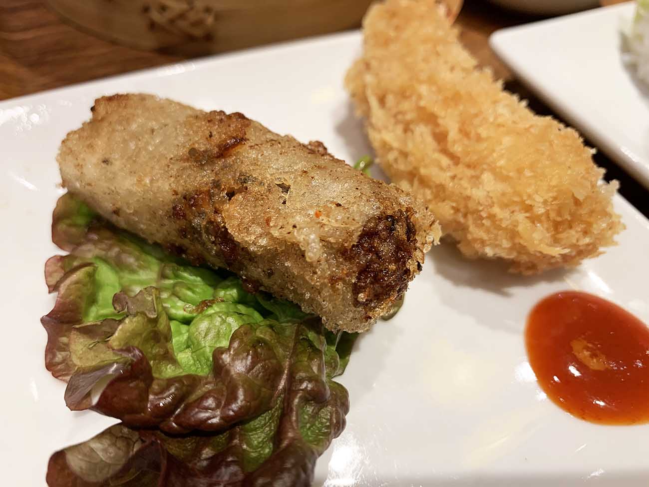 安い方は、春巻きが生春巻きと揚げ春巻きの2種類で、高い方はそこに「蒸し春巻き、海老フライ、サラダ、デザート、ドリンク」が追加されるもよう。蒸し春巻きという存在も初めて知ったので豪華な方のEセットを注文してみた。すると……