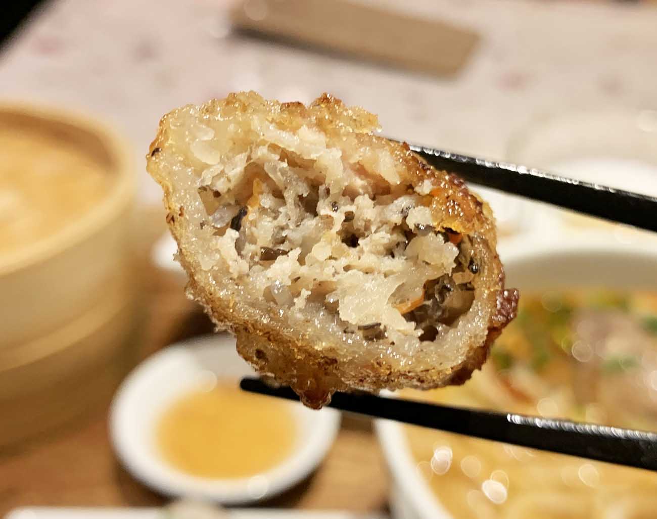 皮がワンタンと餅の間のような感じで、揚げ春巻きほど味の主張が強くないためか、対比的に肉の味を強く感じるのかもしれない。噛んだ瞬間に爆発するように広がる旨みが癖になりそうである。