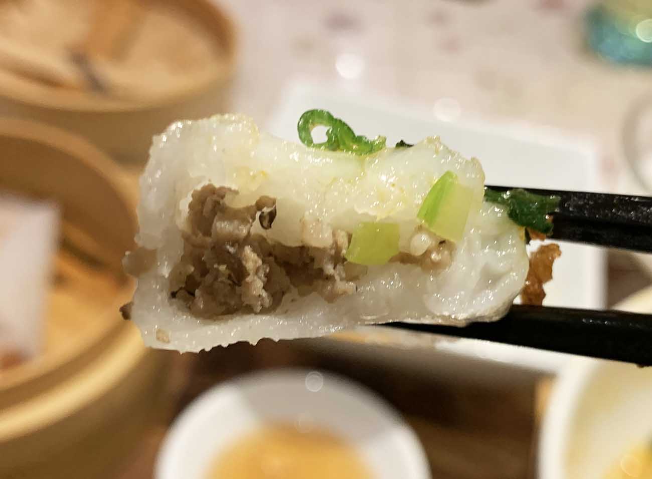 続いて、蒸し春巻きを食べてみたところ、モチッとした皮の食感の後、ふわっと肉の旨みが口に広がる。