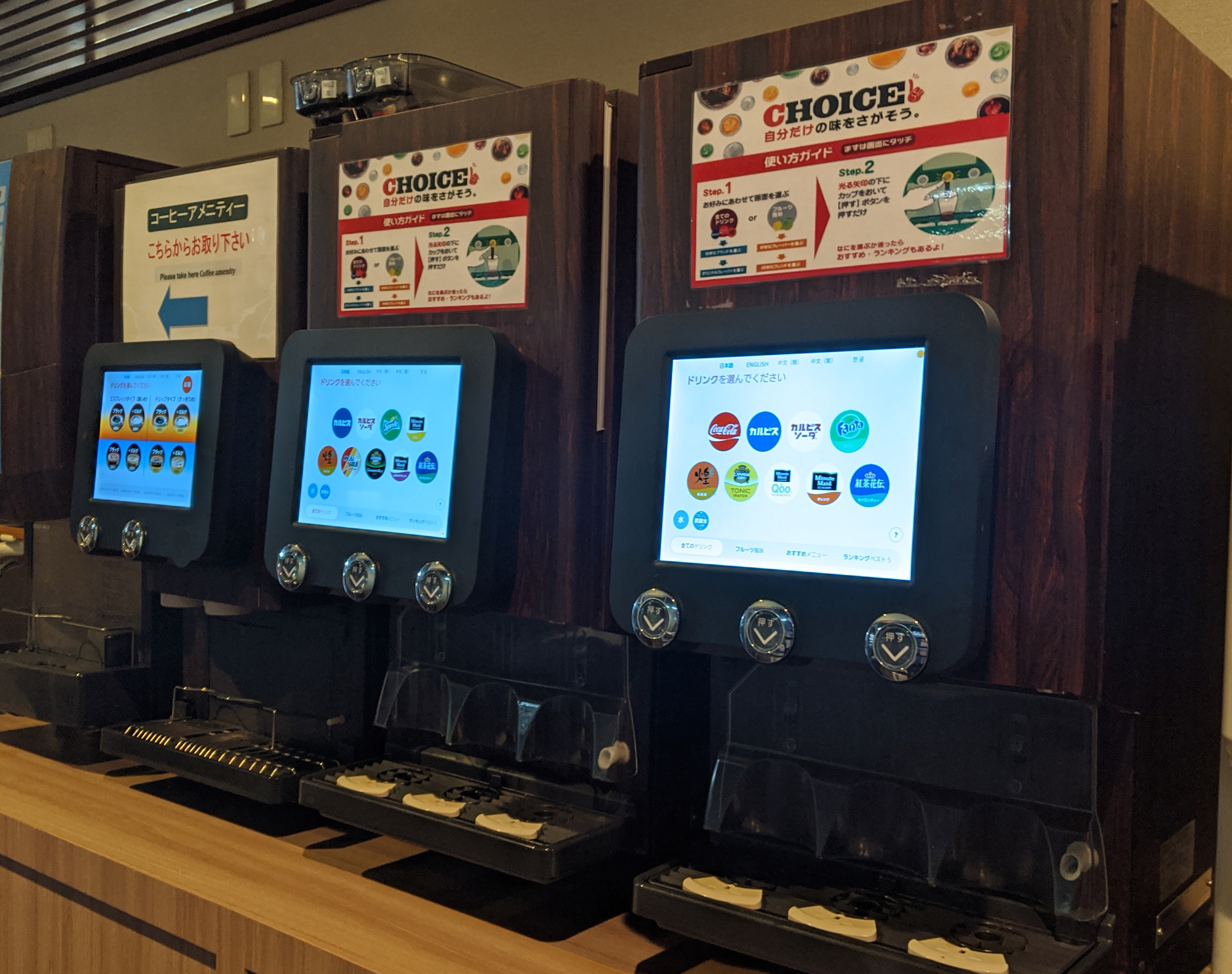 飲み物はセルフサービス。ドリンクバーで好きなものをチョイス。