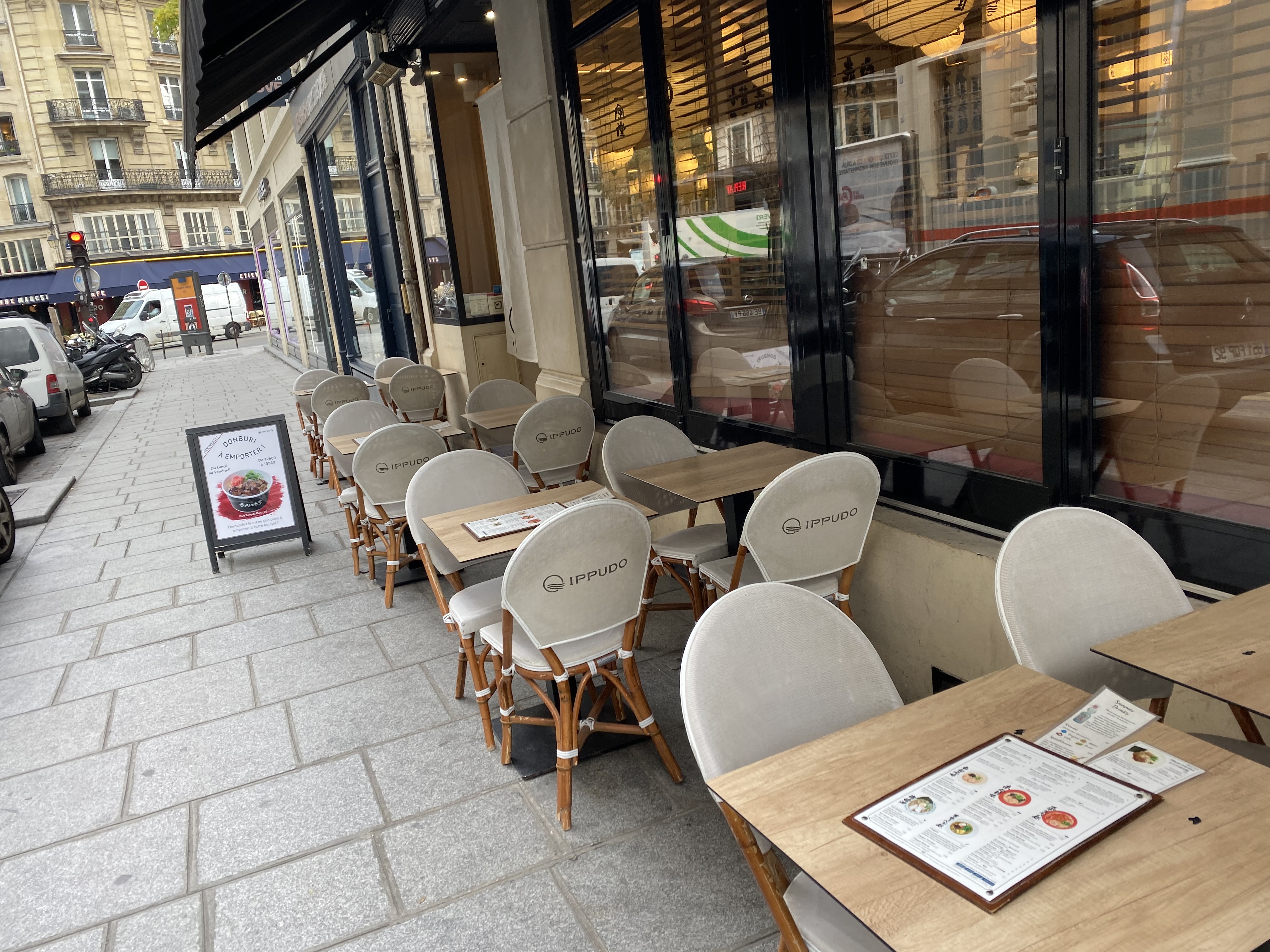 店の外観は注意していないとカフェにしか見えないほどオシャレな造り。のれんに書かれている通り、一風堂というよりは『IPPUDO』のほうが完全にしっくりきている。