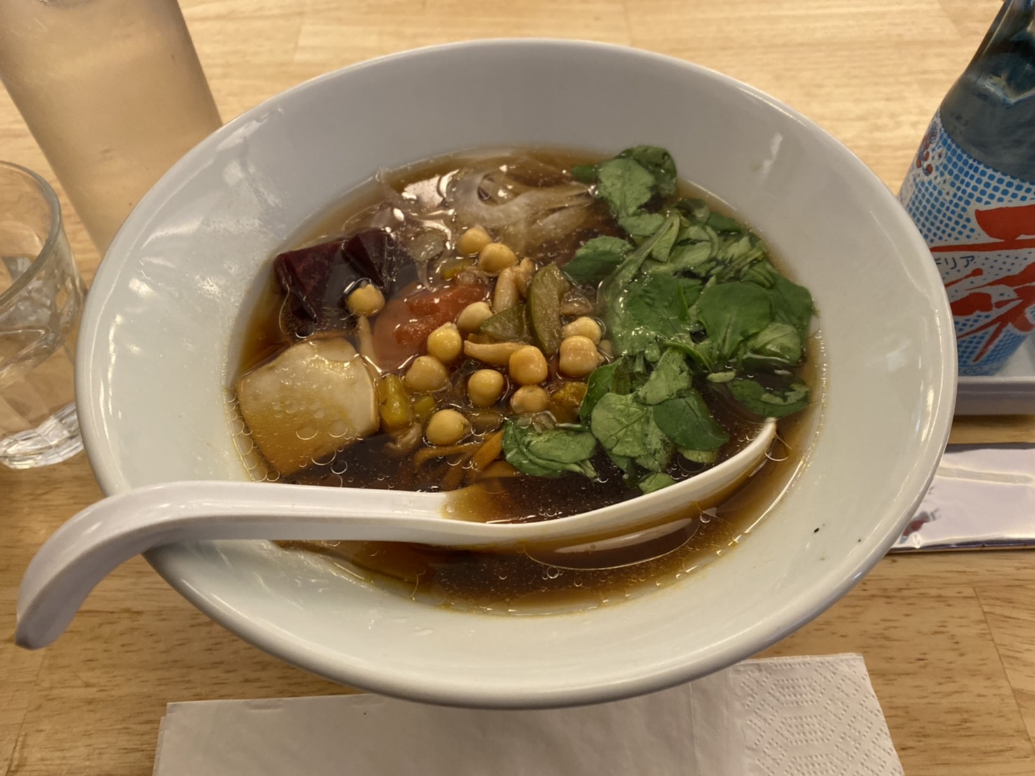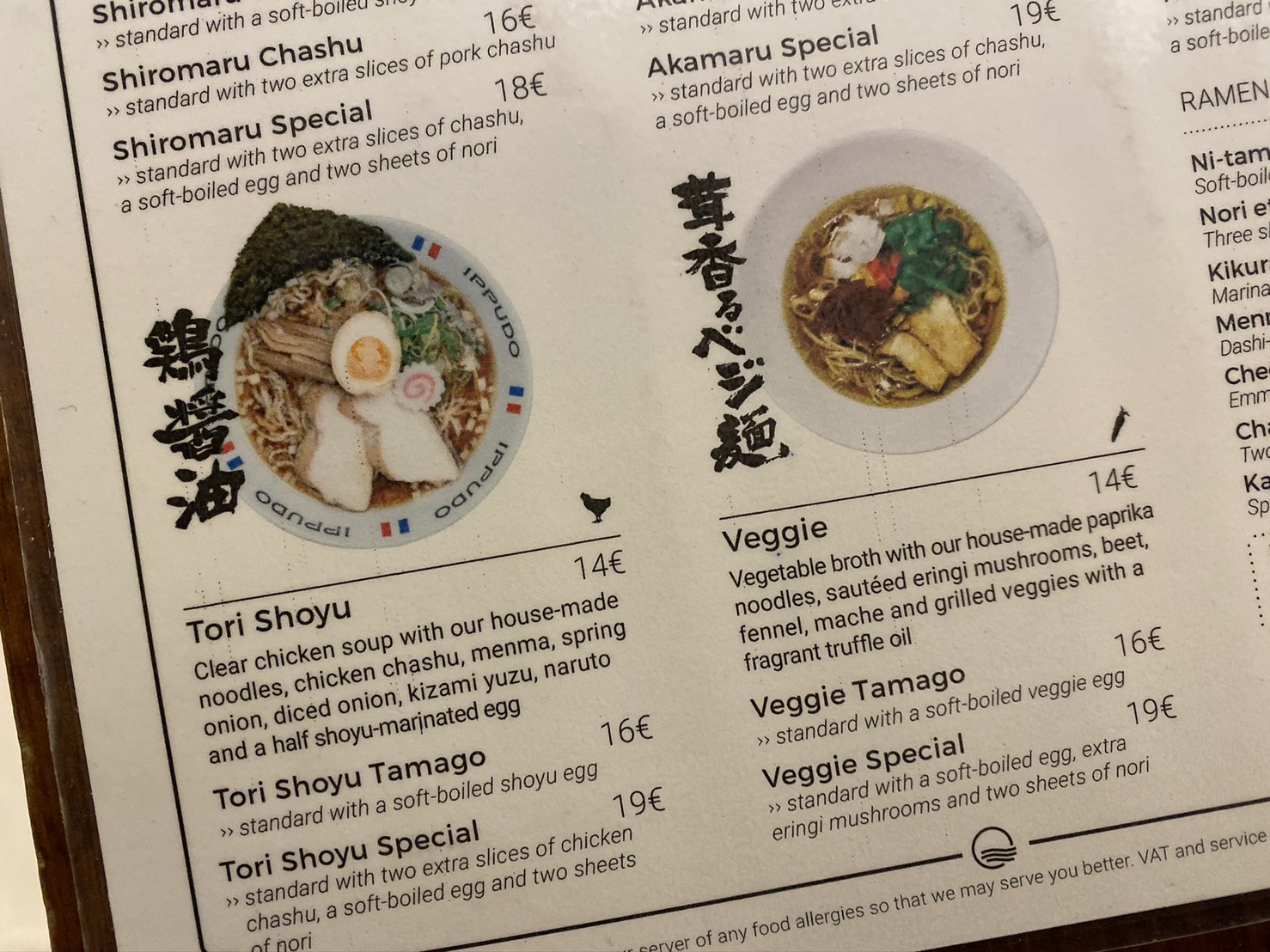 どうやらこの『茸香るベジ麺』と『鶏醤油』のふたつはパリ限定ラーメンであるらしい。『鶏醤油』もなかなかパンチの効いた名前だが、茸香るベジ麺のインパクトには及ばぬ。こうなったら “とんこつ比較” の予定は急遽変更するしかないようだ。
