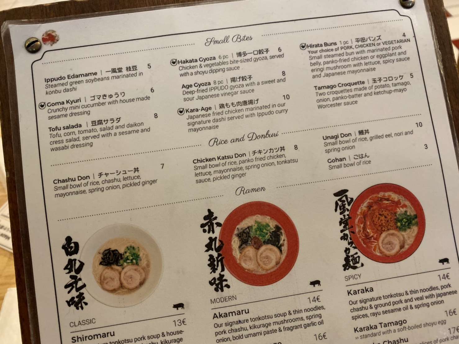 メニューを見れば料金は全体的に日本の約2倍ほど。おなじみの「白丸・赤丸」の名もそのまま継承されていて、写真を見る限り違いはなさそう……