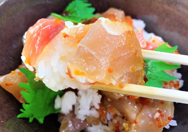 加えて、これらは “特製茶碗蒸し” もしくは “あおさ入り赤だし” 付きだ。丼にはご飯がたっぷり詰まっているし、ネタも通常メニューのモノと比較すると、お得であることがわかる。記者は “旬の海鮮丼” を注文したが、イクラやトビコ、サーモンやウニ、マグロなどが乗っていた。