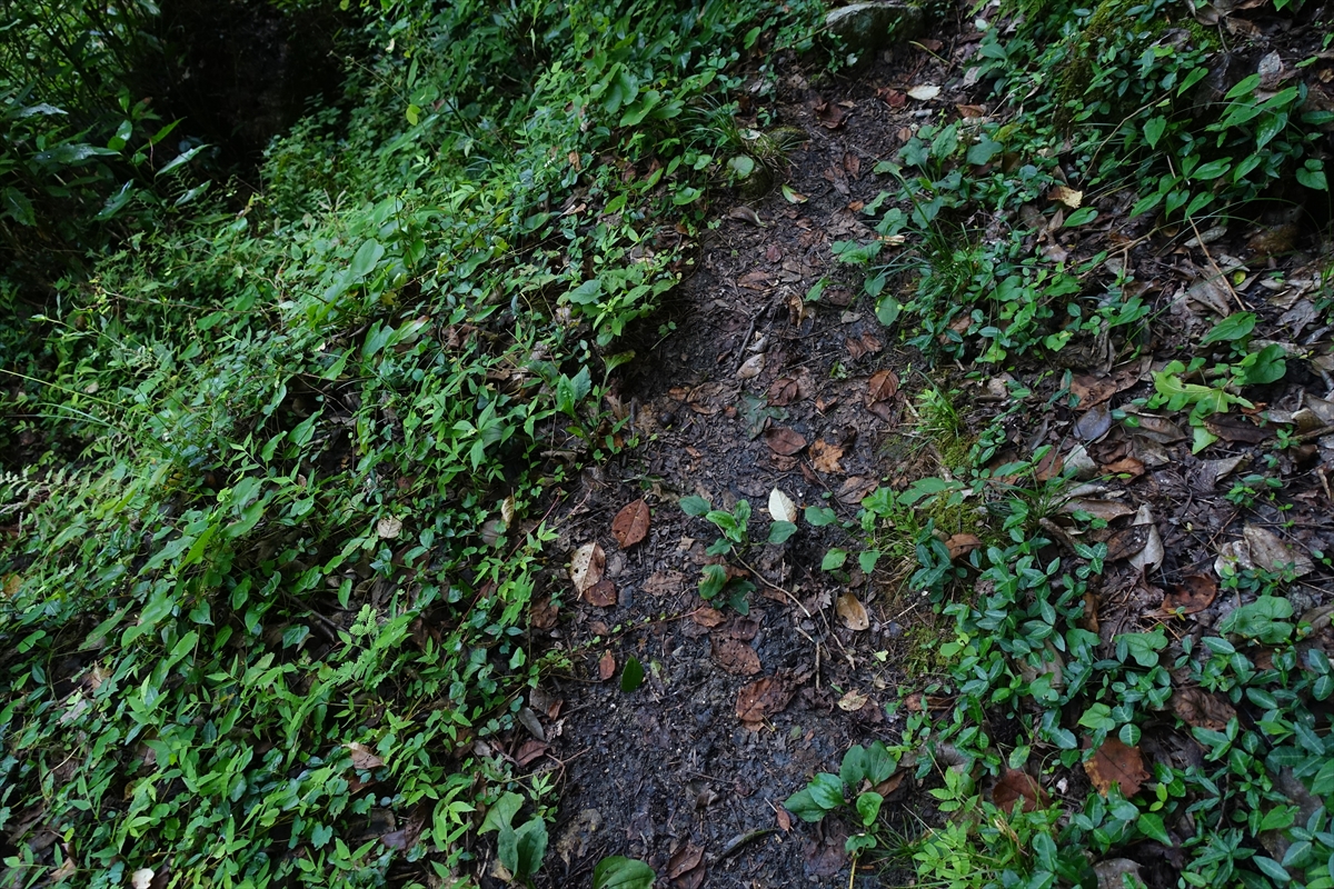 ヒルは温度と二酸化炭素に反応するとの情報を聞いたため、ストローであらゆる場所に息を吹きかけながら林道を隅から隅までゆっくり練り歩いてみる。