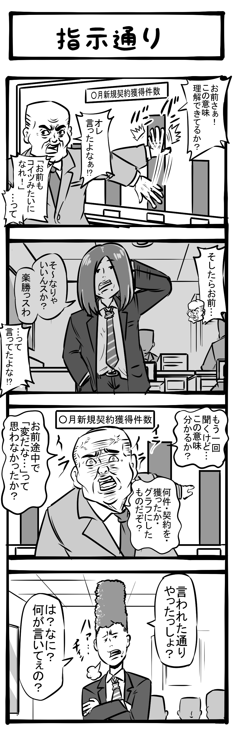 マンガとかで見るような営業成績をデカデカと見える所にグラフにしてある会社って、今でもあるのかな。その話とは少し違うんだけど、私が以前勤めてた会社はノルマを廃止したかのように見せかけて「努力目標」という名前に変えて、しっかりと存在してました。まぁ、仕方ないことだとは思うんだけどね。