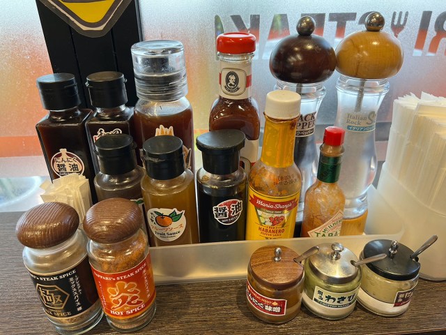 ▼この卓上調味料の多さよ! 「お好きなように楽しんで」という気持ちを感じる