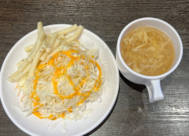 ▼サラダ・スープ食べ放題とはいってもそこまでバリエーションがあるわけではない。店を訪れたときはサラダ2種にスープ1種類だった。価格を考えたら十分