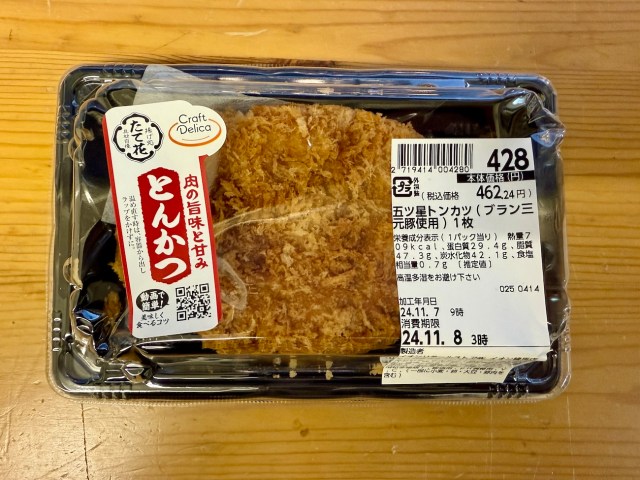 商品名は「五ツ星とんかつ(ブラン三元豚使用)」で、価格は462円。ブラン三元豚は味の総合的なバランスが良く、なかでも肉の旨味と脂肪が持つコクが優れているという。ちなみに最も衣をはがしやすかったのがイオン。