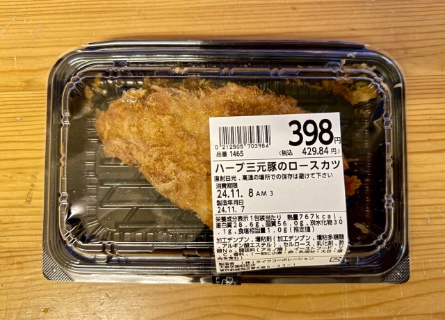 トップバッターは、首都圏と近畿圏で300店舗以上を展開するライフだ。商品名は「ハーブ三元豚のロースカツ」で、価格は429円。