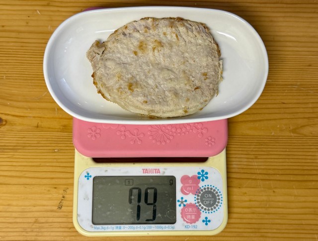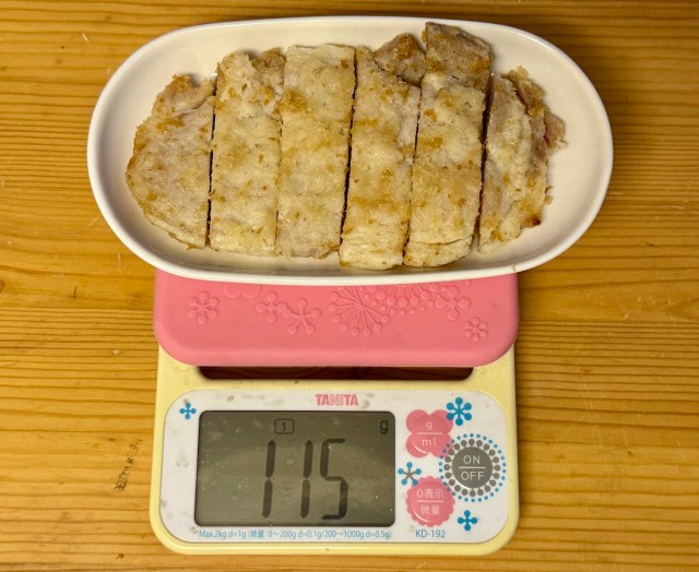 これは衝撃的な数字……見た目では分からなかったが、かなり差があることが判明した。100グラムあたり約584円。もちろん個体差もあるだろうし、衣も含めてとんかつだから豚肉の量=正義というわけではない。とはいえ、なかなかの攻めである。