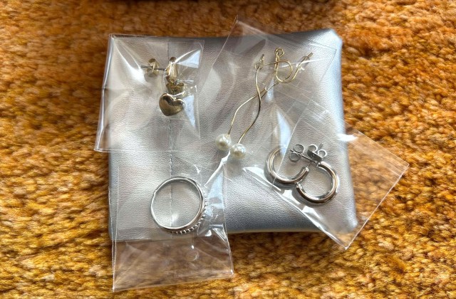 なんにせよ、いずれも1点100円という計算になるので破格としか言いようがない。アクセサリーボックスには、ピアスとリング以外にもそれらを入れることができるポーチが付いているので便利だ。