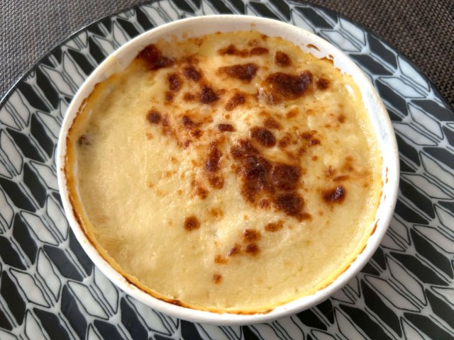 レンジから取り出しラップを外すと、レモンが乗っていないあたりが店とはちょっと違う……? とはいえ焦げ目までついていて、とても先ほどまで凍っていたとは思えない。