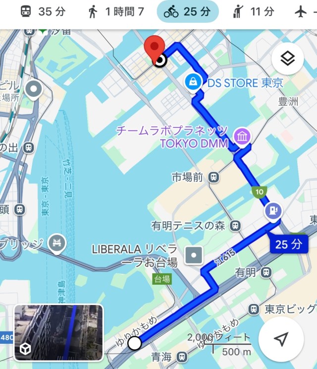 乗り換えや返却ステーションの位置を考えると、大江戸線・勝どき駅がベストであろう。フジテレビからの所要時間は……約25分。けっこう遠いな!