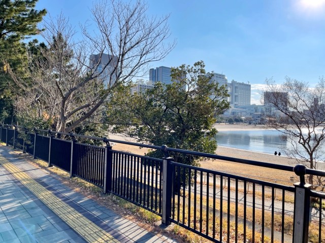 レインボーブリッジを渡り終えると、目の前に広がっていたのは「お台場海浜公園」。ビーチを眺めながらフジテレビ方面を目指してペダルを漕いでいく。