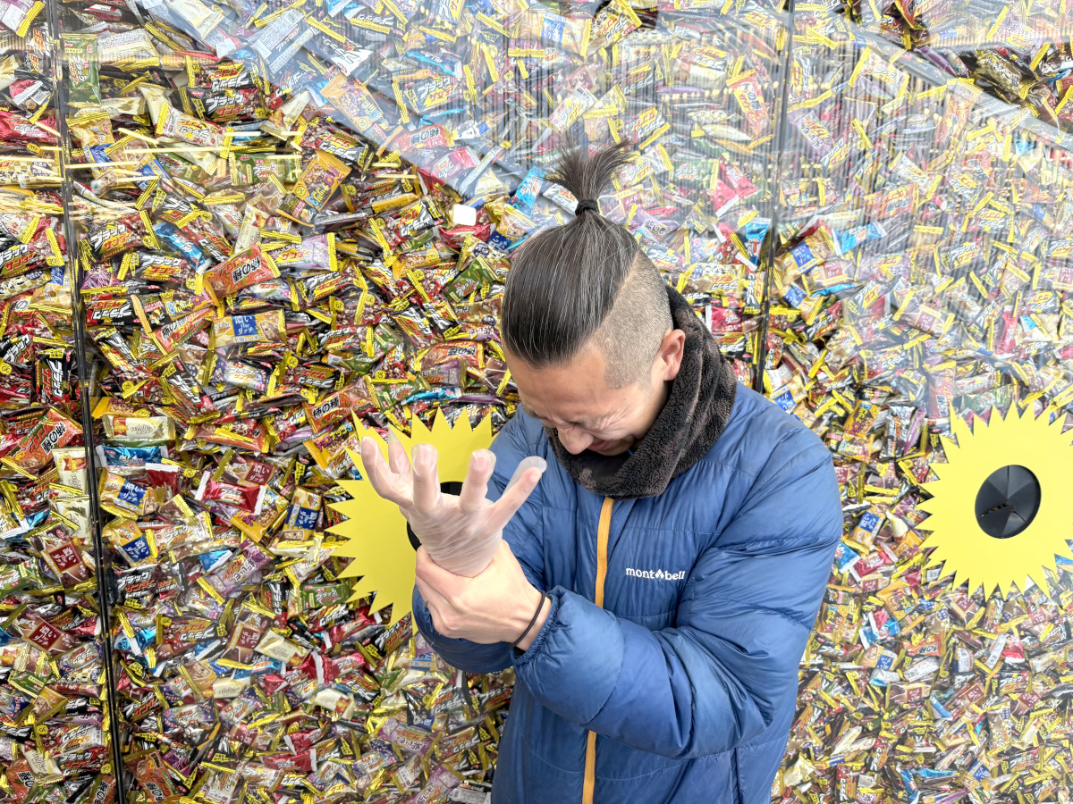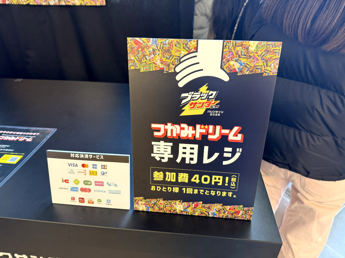 そんな憧れのつかみ取りが2025年2月10日(月)から原宿にて開催されているという。しかも参加費はたったの40円! つかみ取りの対象となるのは、俺たちの『ブラックサンダー』DA!!