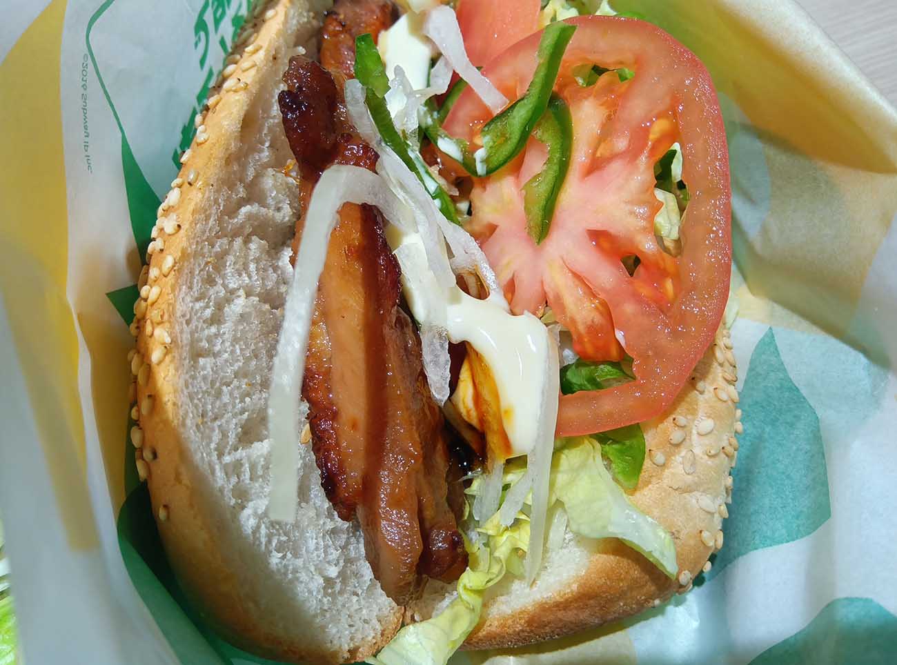 てり焼きソースの甘みにも負けないチリソースのピリ辛。実は、サブウェイのチリソースをこの時初めて食べたのだが、しっかりピリピリくる刺激に海外のチリソースっぽさを感じた。ゆえに、スイートチリと言っても甘酸っぱい系ではなく、甘さの壁をピリ辛が奥から貫いてくる。