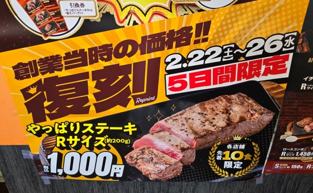1ポンドのステーキセットが1980円!「ジュークステーキ」が毎月19日にビビるほど安くなる / ただし店舗が…