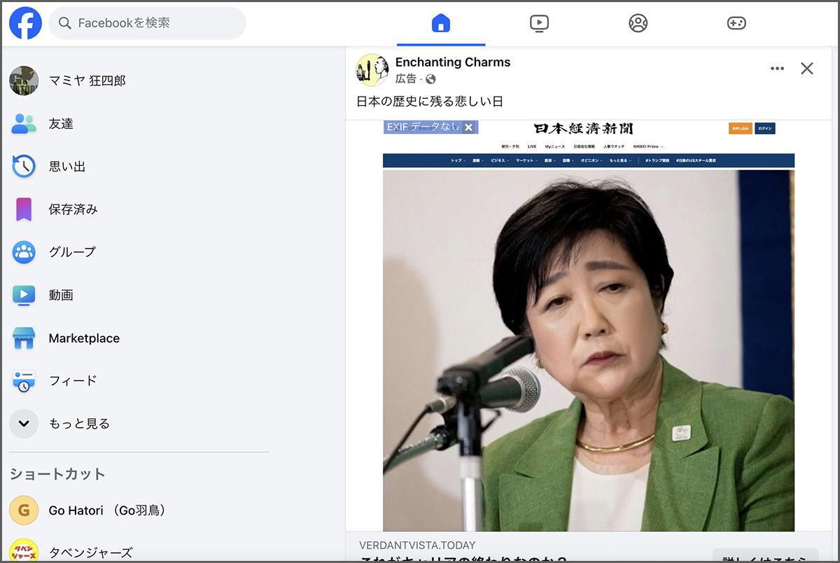 ※注意!※こんなことを書いている最中、まさに「小池百合子都知事のなりすまし投資詐欺広告」が表示された。
