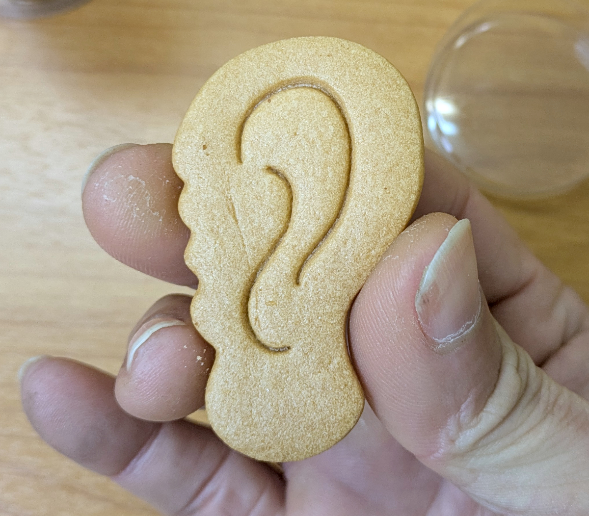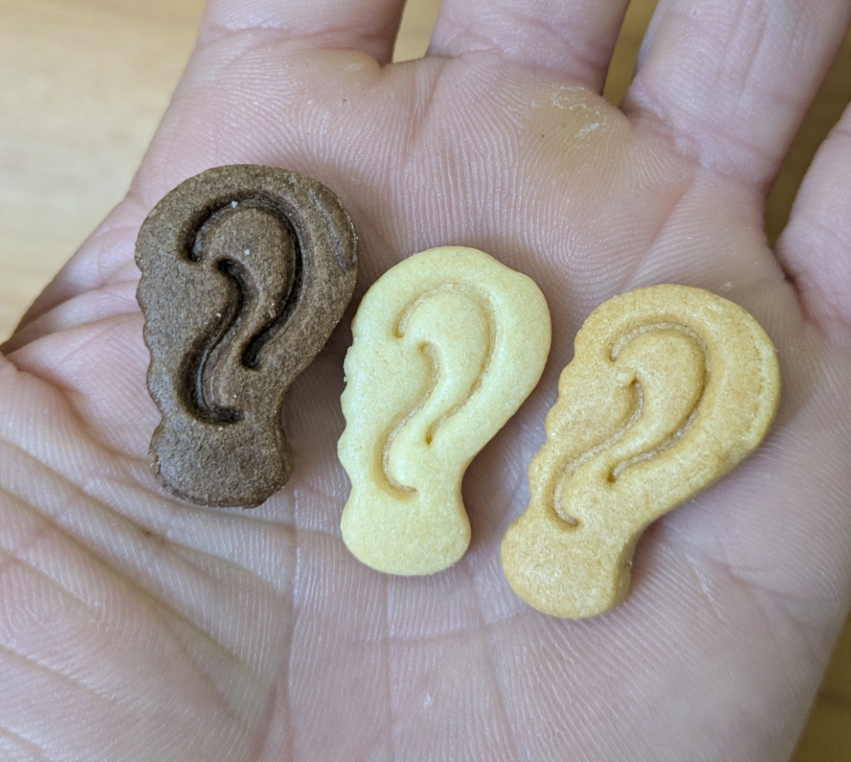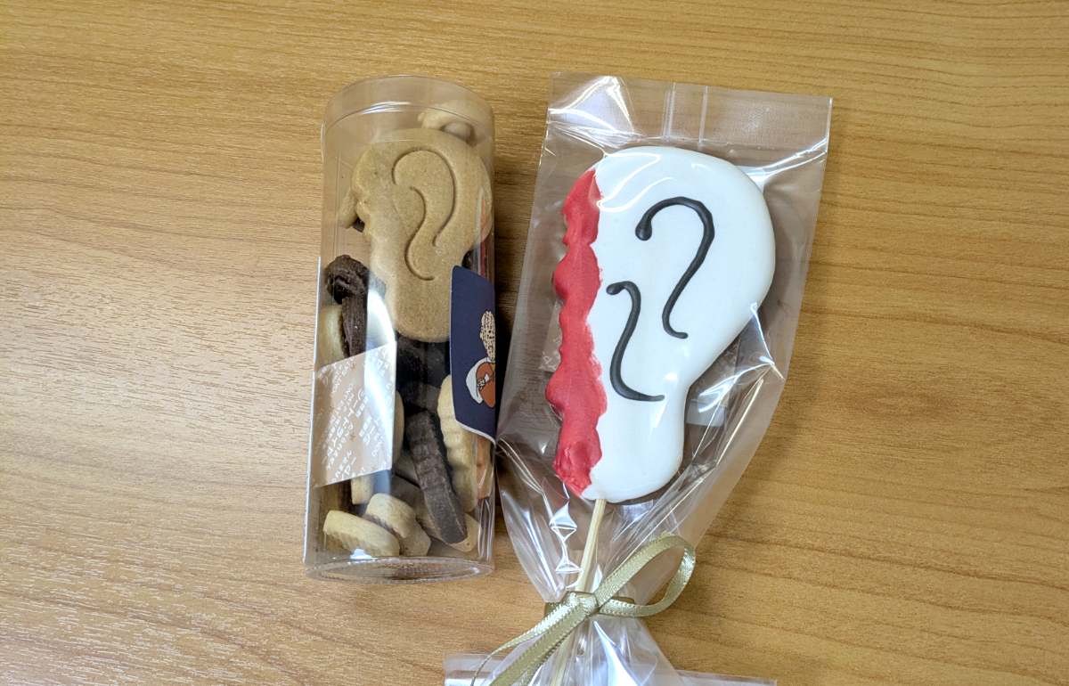 せ~の! 「耳」。この写真は耳をかたどったクッキーで~す!