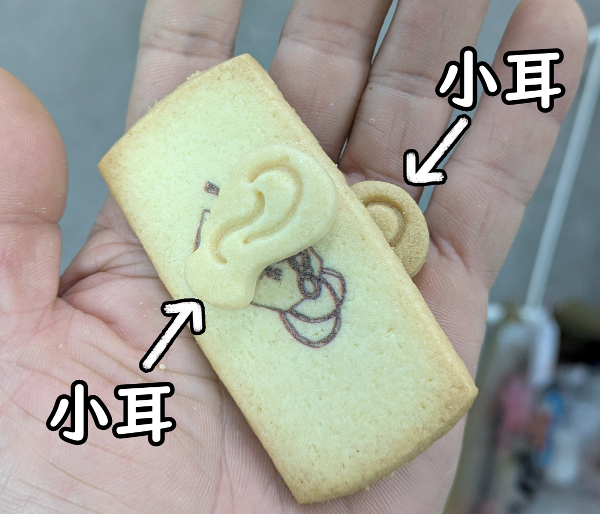 小耳? ということは、これで挟むと「小耳に挟んだ」ということになるな、うん。別のクッキーを小耳に挟んでみたぞい!