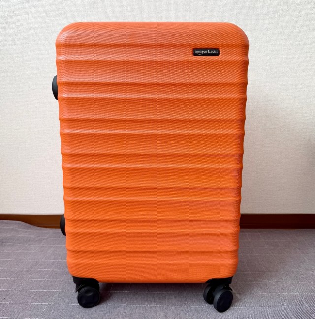 カラーは5種類(オレンジ・ブラック・ネイビーブルー・ライトブルー・ネイビー)で、選んだのはAmazonのロゴカラーであるオレンジ。空港で荷物を受け取る際に最も見つけやすいカラーだ。