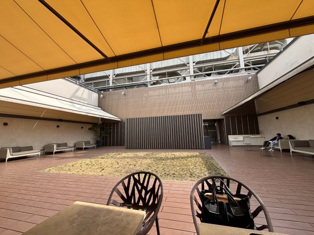 まず、ひとつめの屋上は8階レストランフロアの中にある「MGテラス」。正確には屋上ではなくテラスだが、芝生エリアがあって開放されていて屋上同様に使える。