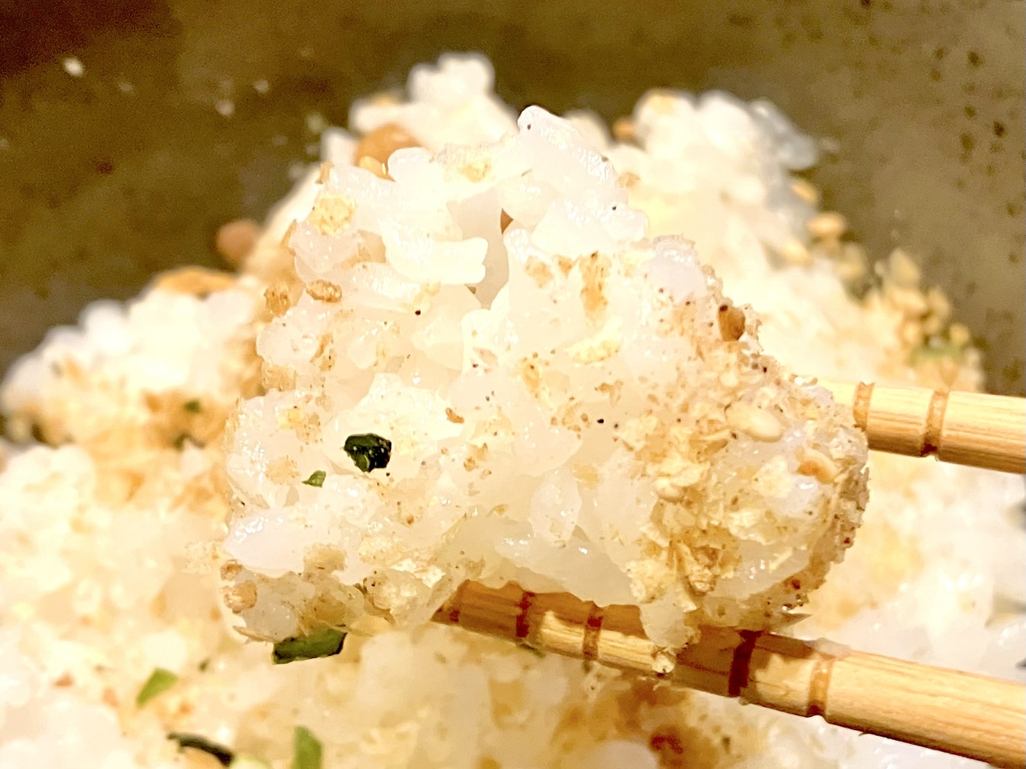 チップはしばらくするとお米の湯気を吸ってしっとりした食感になっていたので、サクサク感を楽しみたい人はお米を食べる直前にふりかけた方がいいかもしれない。
