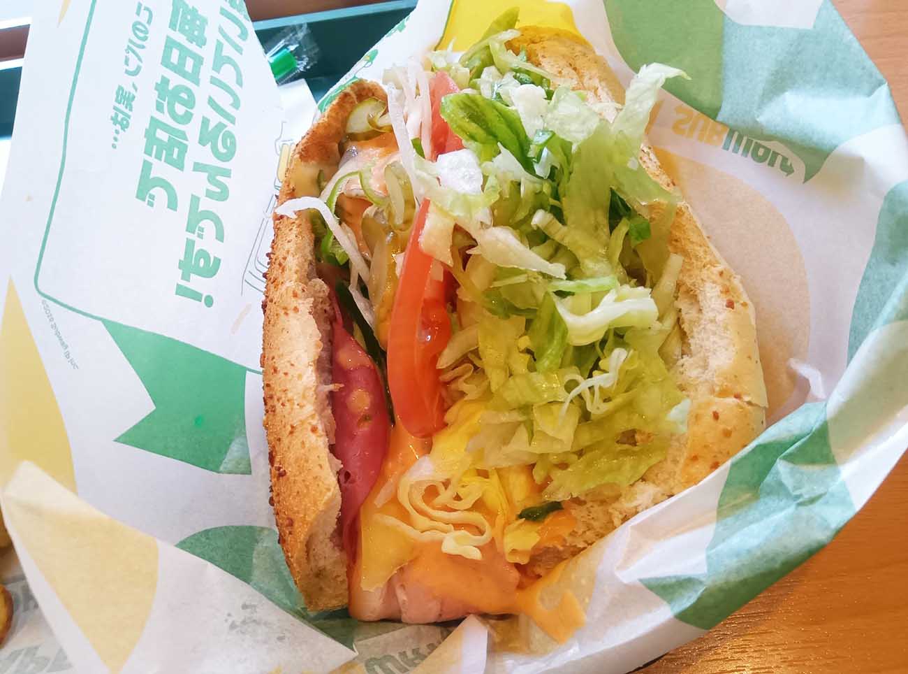 まあ、実際には注文は店員さんの「パンどうします?」などの質問に答えていく形式だから、文字面ほど呪文みはない。チーズオンチーズハム追加だけ伝えといたら、あとは質問に答えていくだけで完成するから全部暗記する必要もないと思う。どちらかと言うと、店員さんとの共同作業だ。