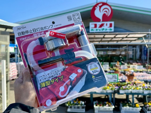 そこまで言うなら……ということで、タイミング的にどうかと思うが、私が使っている電動灯油ポンプを紹介したい。あらためて調べたところ、ホームセンター「コメリ」のオリジナル商品だった。