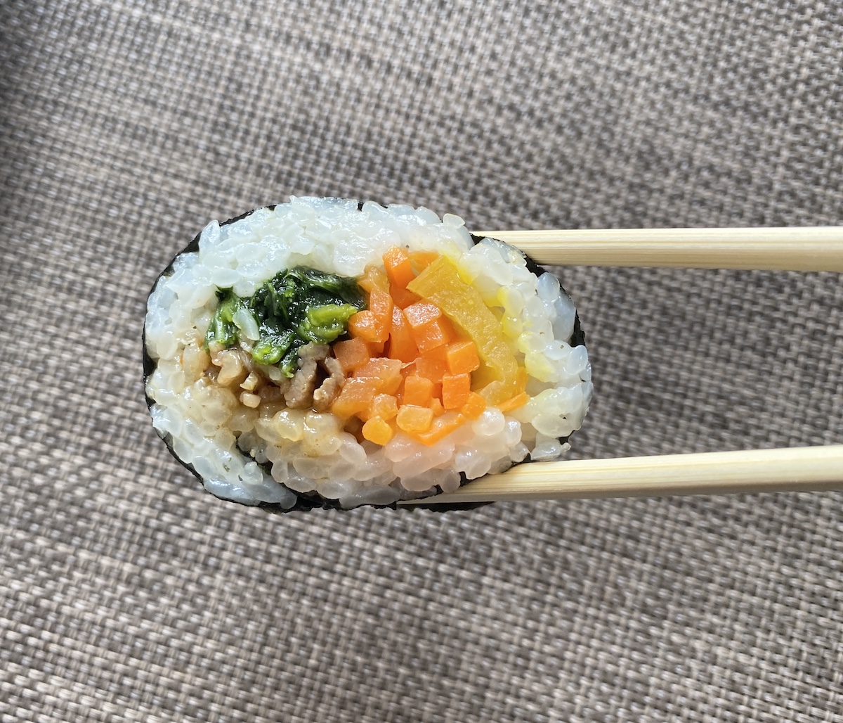 ちなみにキンパはチーズタッカルビとプルコギの2種類があって、どちらにするか迷ってクセがなさそうな後者をチョイスした。