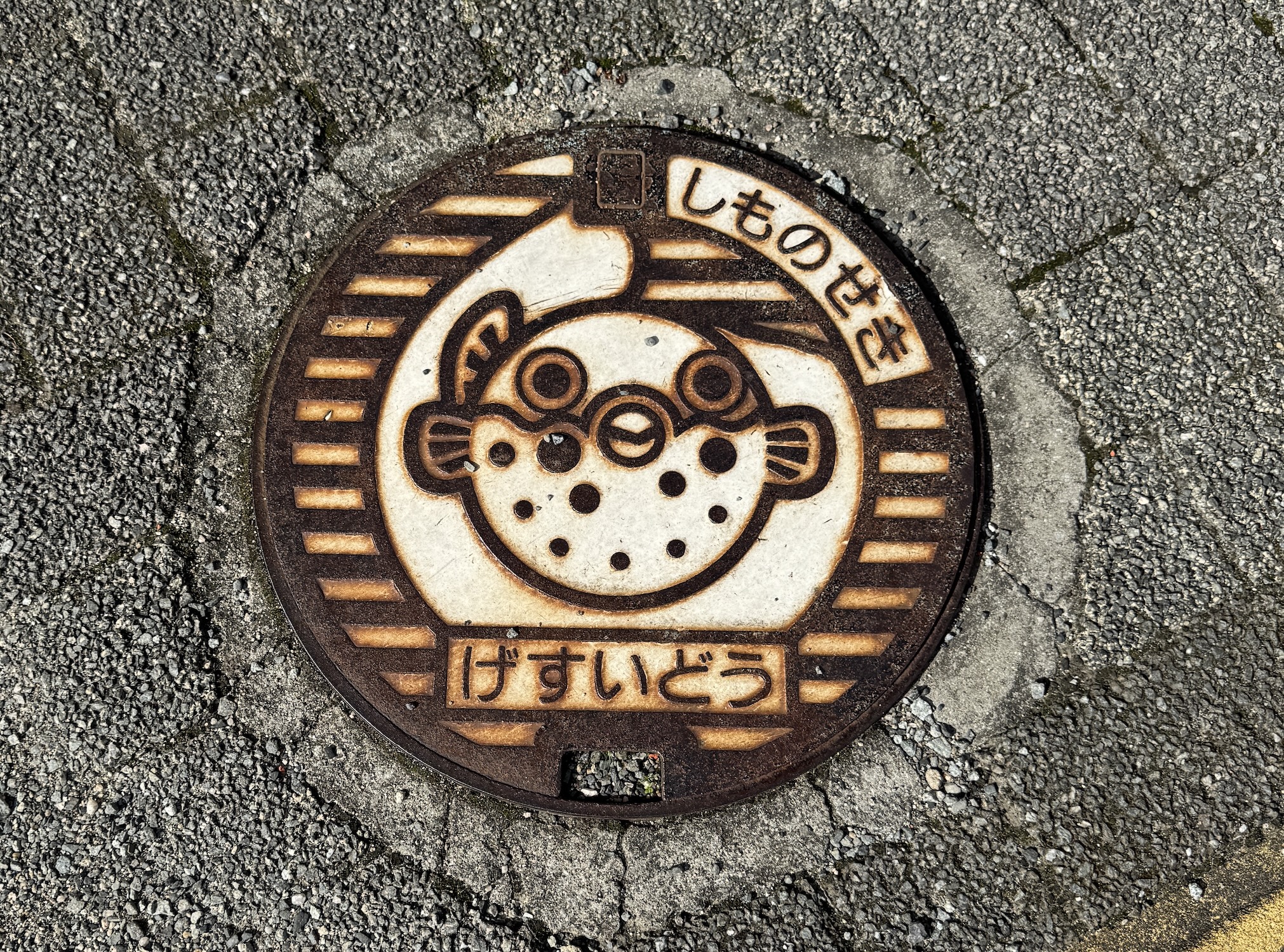 「下関といえばフグ」という知識はあったが、「これほどまでにフグ」とは実際に訪れて初めて知った。フグ関連の土産はもちろん、フグ壁画、フグマンホール、フグ銅像などなど、どこへ行ってもフグ一色。こんな圧倒的なヒーローがいる街、うらやましいなァ。