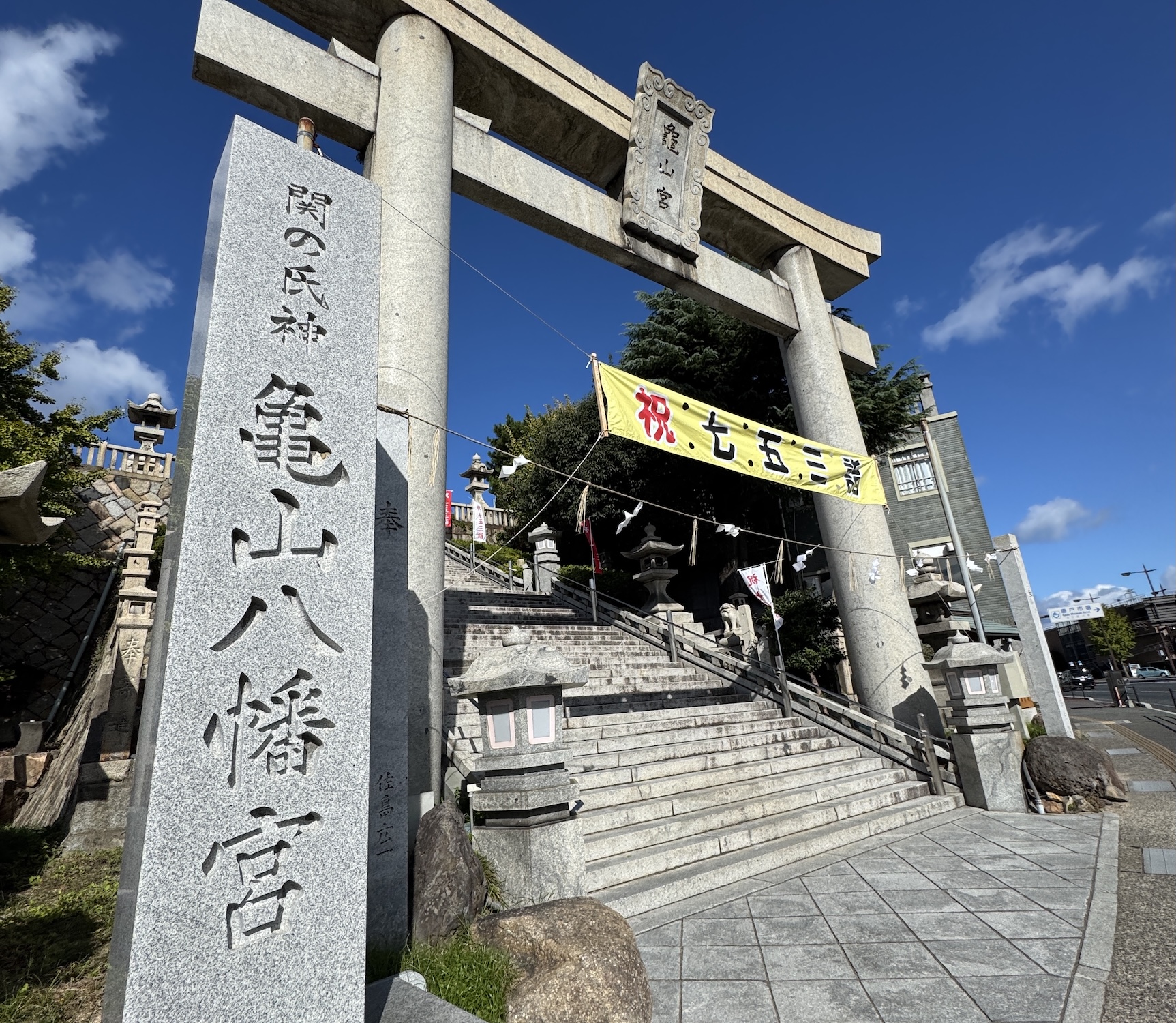 ならば市場周辺に飲食店はないのか? と見渡すと、向かいに『亀山八幡宮』という立派な神社があって「せっかくなので拝んどこう」という気持ちになる。