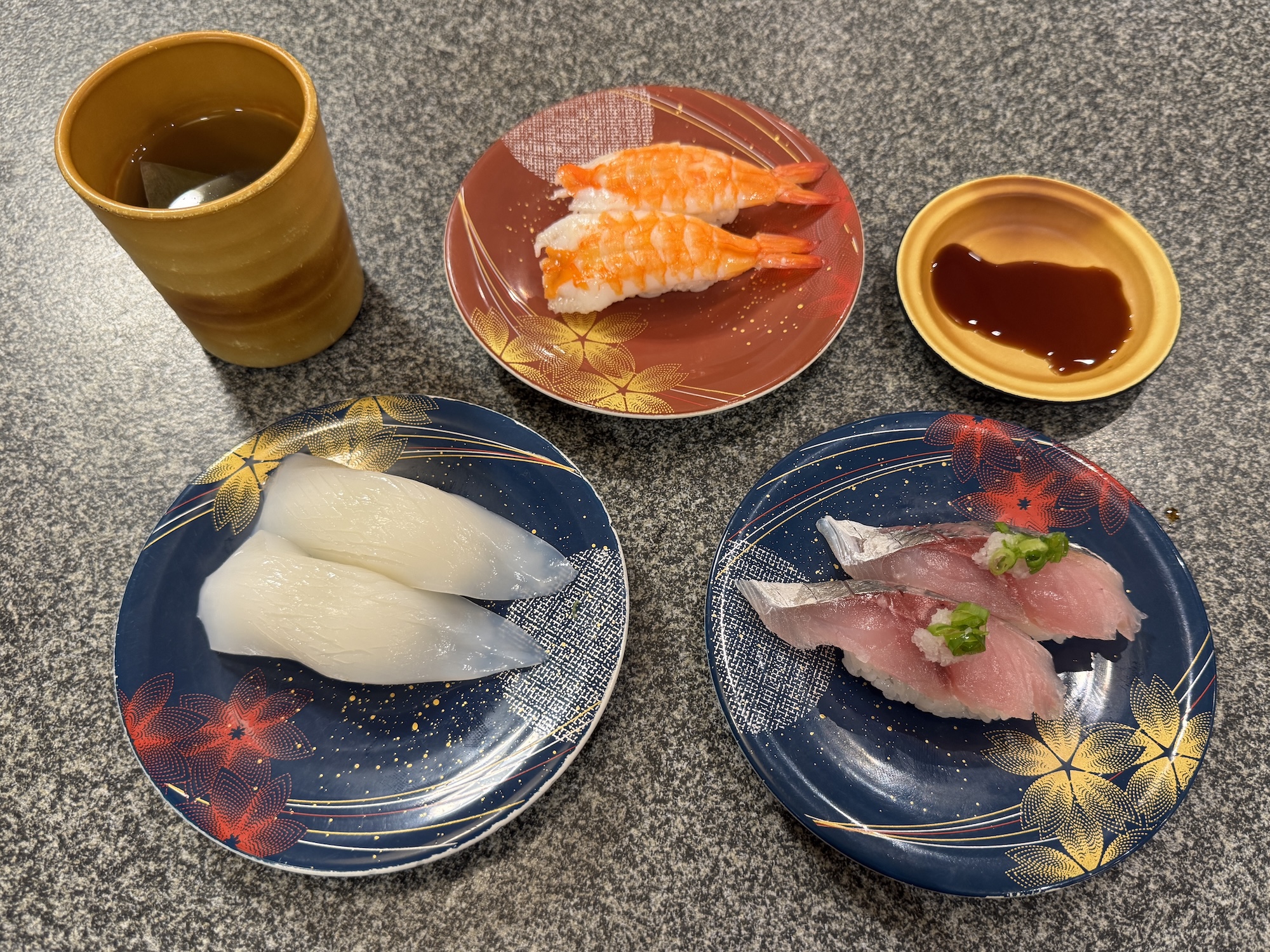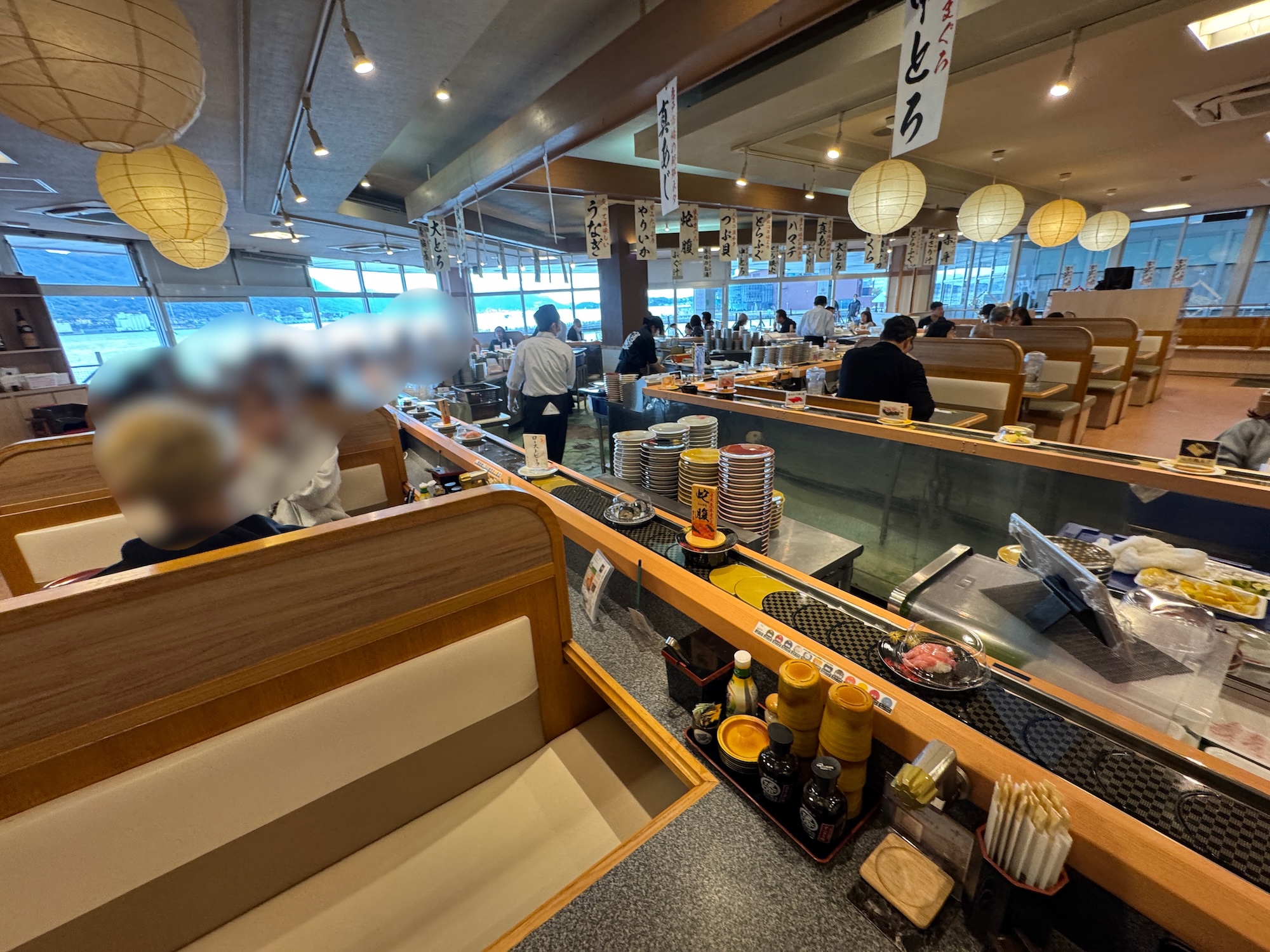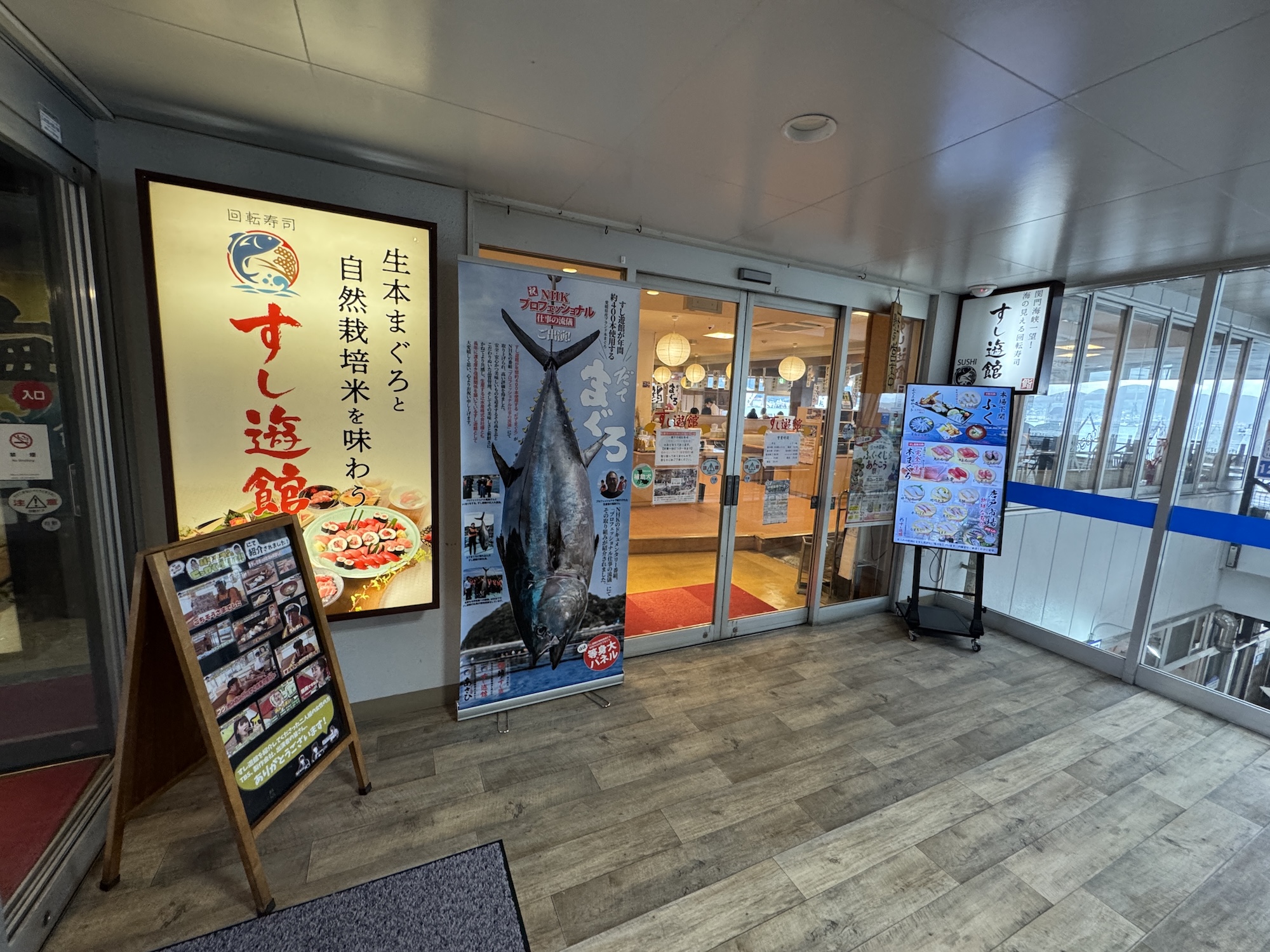 カモンワーフ内の回転寿司店『すし遊館』へやってきた。平日なのに40分待ちであった。