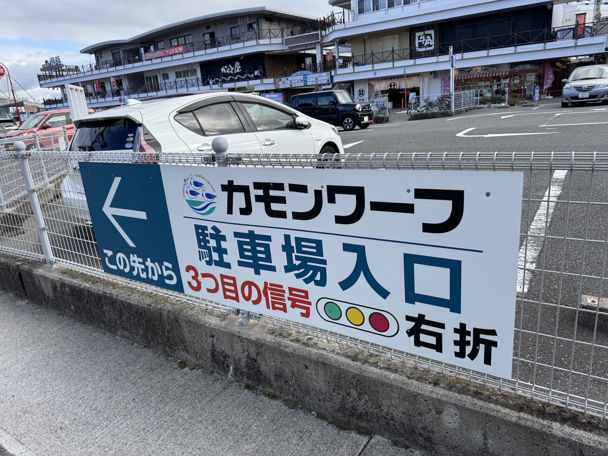 カモンワーフは多くの飲食店や土産物屋が入った飲食施設。ここで『ふぐ焼き(たこ焼きのフグVer.)』やら『ふぐせんべい』やらを食べ、ある程度の満足感を得た私だったが、やはりどーしてもフグ刺が食べたかったので……