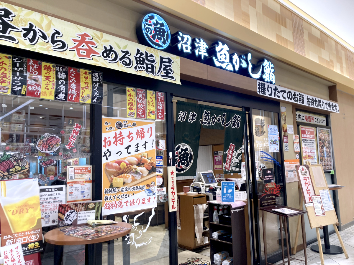 とはいえ胸がいっぱいでもお腹はペコペコ。そこで繁華街を行きつ戻りつしたが、お店に目星をつけられない。駅周辺を歩き回ったが、ココ! ってお店を決められず、結局「沼津魚がし鮨」で手を打つことにした。