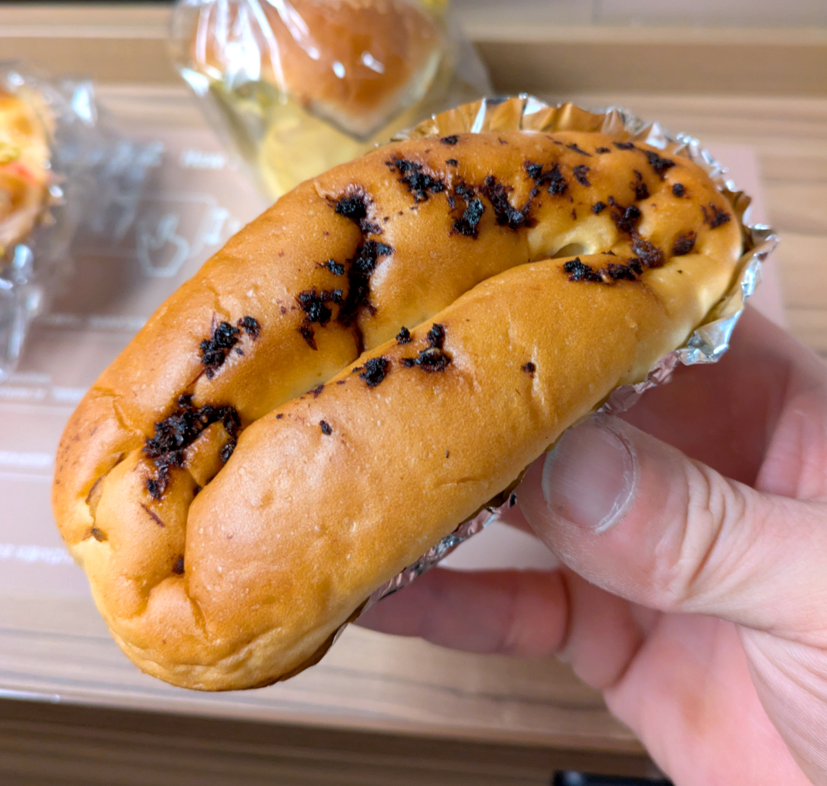 鰹パンの上に乗っているチョコっぽく見える黒いのは、かつお節だった。