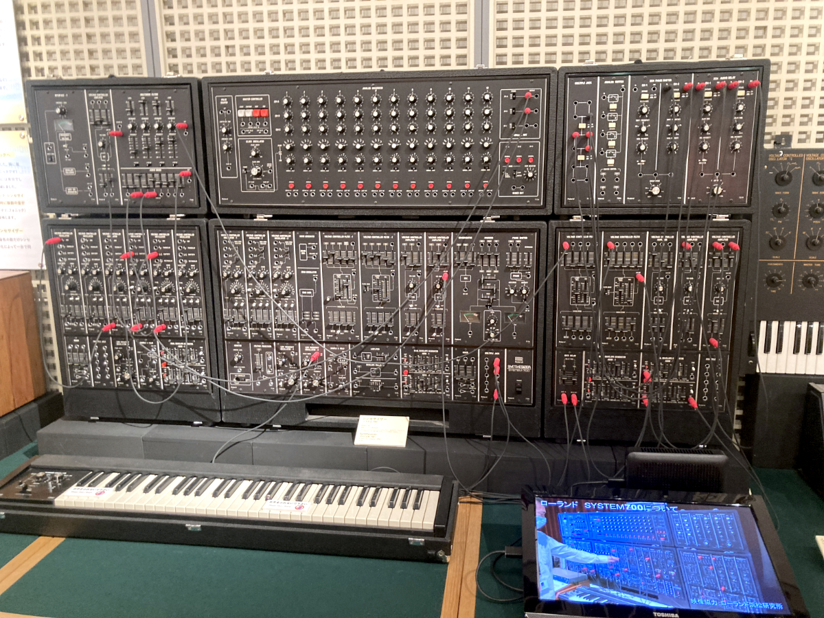 個人的に興味深かったのは、ローランドの大型モジュラーシンセサイザー「システム700」だ。その存在感は圧巻! 今はタブレットやPCですべてをまかなうことができるけど、シンセサイザーが出始めた当初は、こんなに巨大なマシンが必要だったんだなあ。