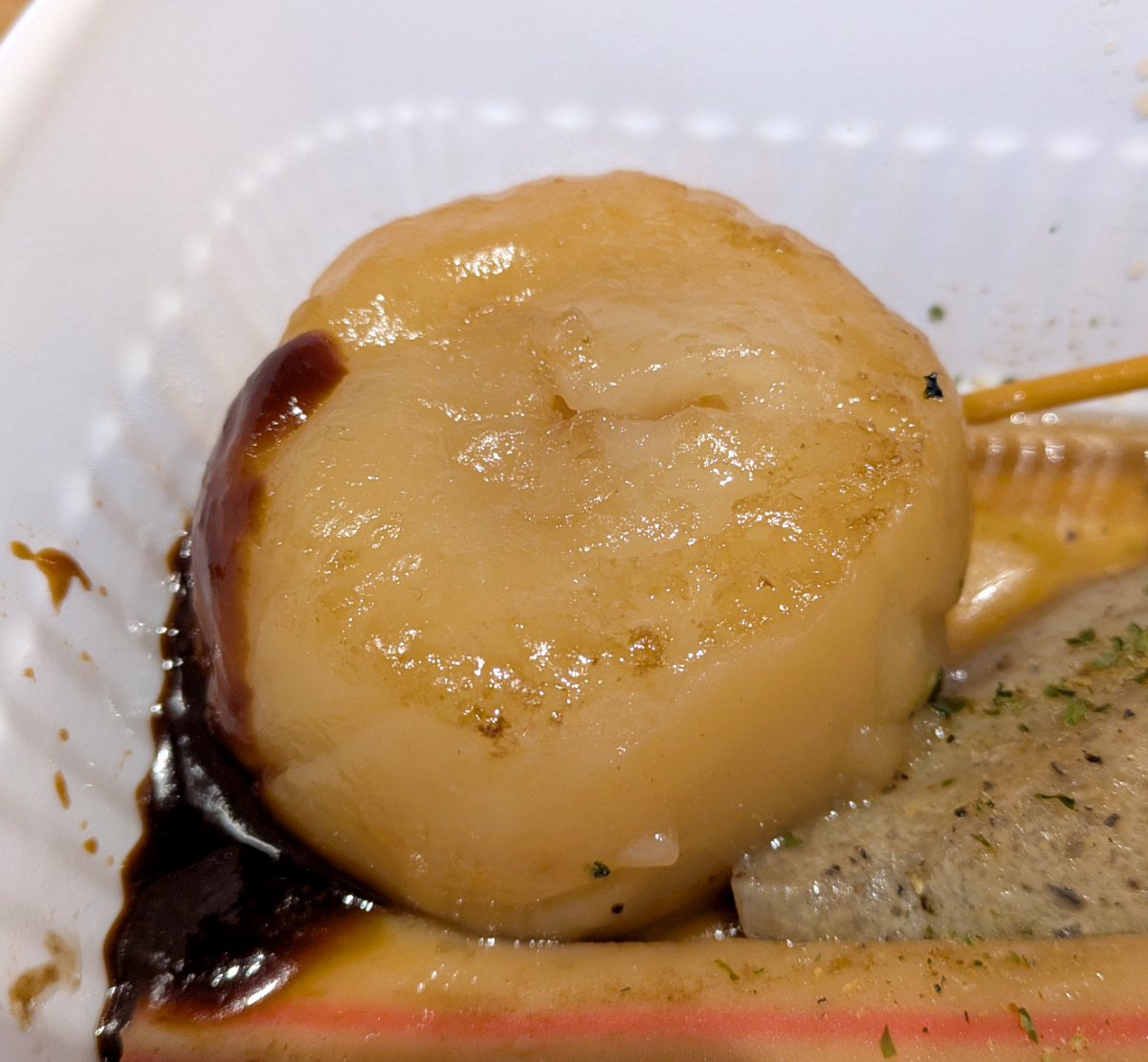 こいつは「なると」(税込150円)だな。それはわかるけど、縦割りだから渦巻きが見えない。串刺しにするから仕方ないか。
